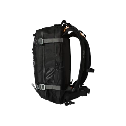 The backpack’s airbag is powered by a supercapacitor, meaning there are no gas canisters or batteries required, making the backpack easy to travel with by air, and also giving the possibility to test the airbag functionality before heading into the backcountry.